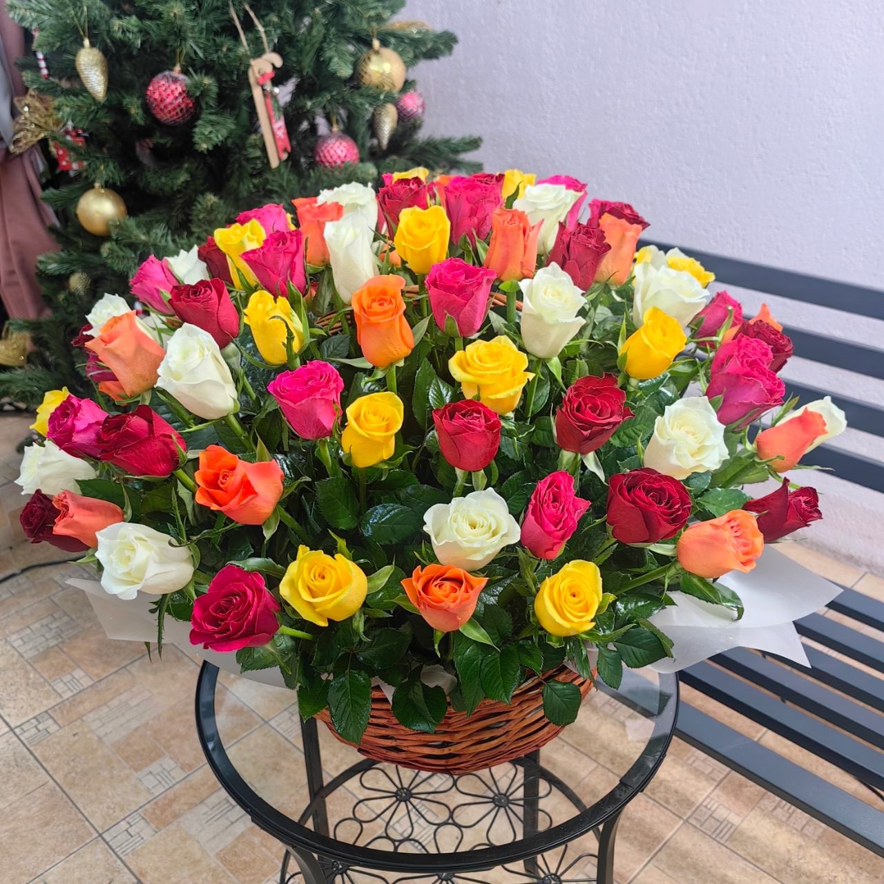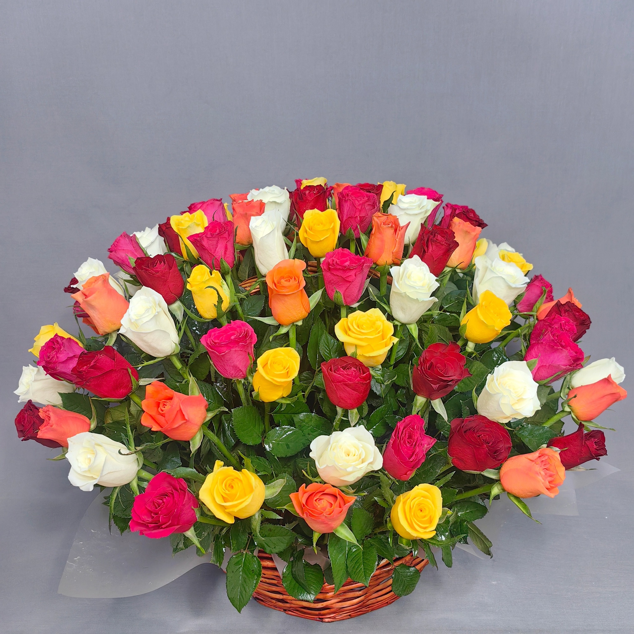 Корзина из 101 розы mix (Кения 40 см)