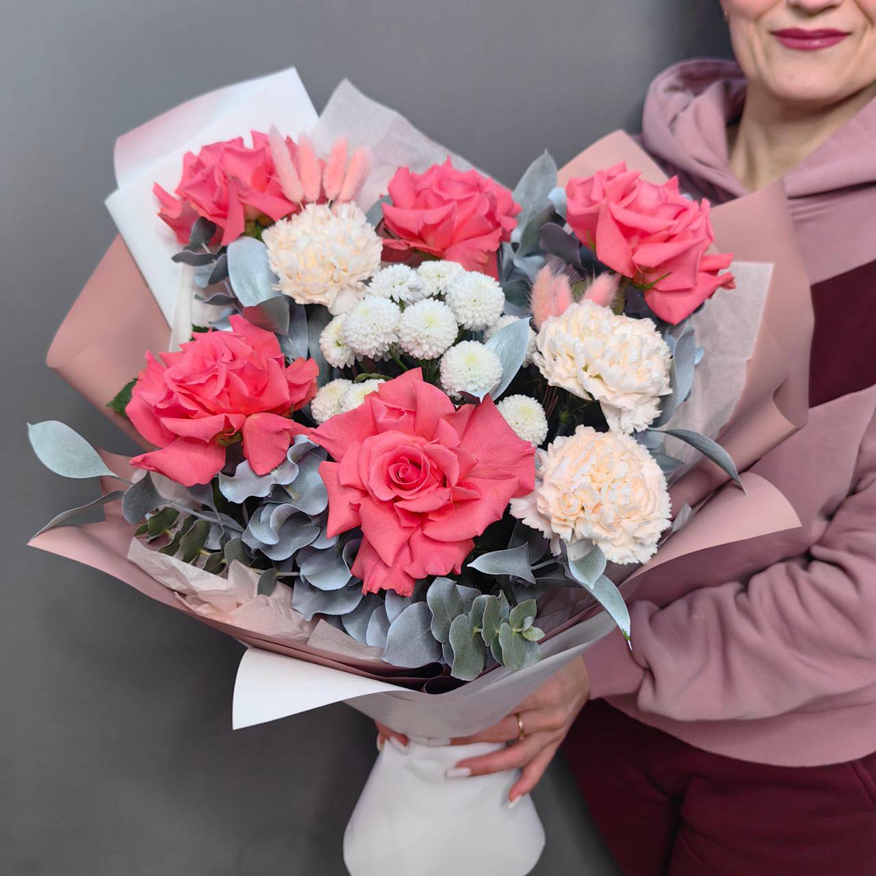 🌿 Каждый букет индивидуален, и повторить его «точь-в-точь» очень трудно. При сборке мы постараемся максимально сохранить цветовую гамму и стиль букета.