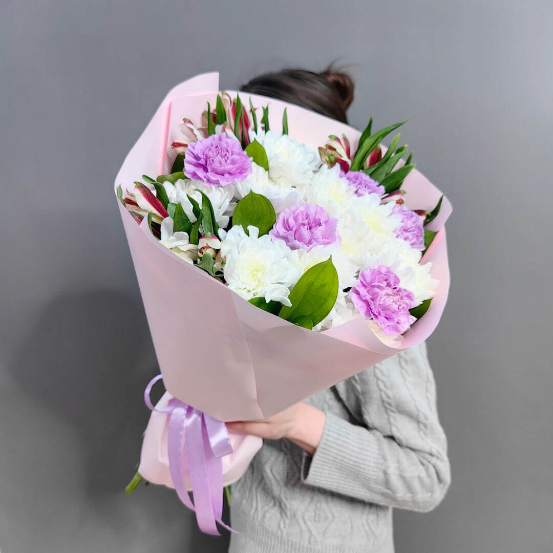 Авторский букет с сиреневыми диантусами