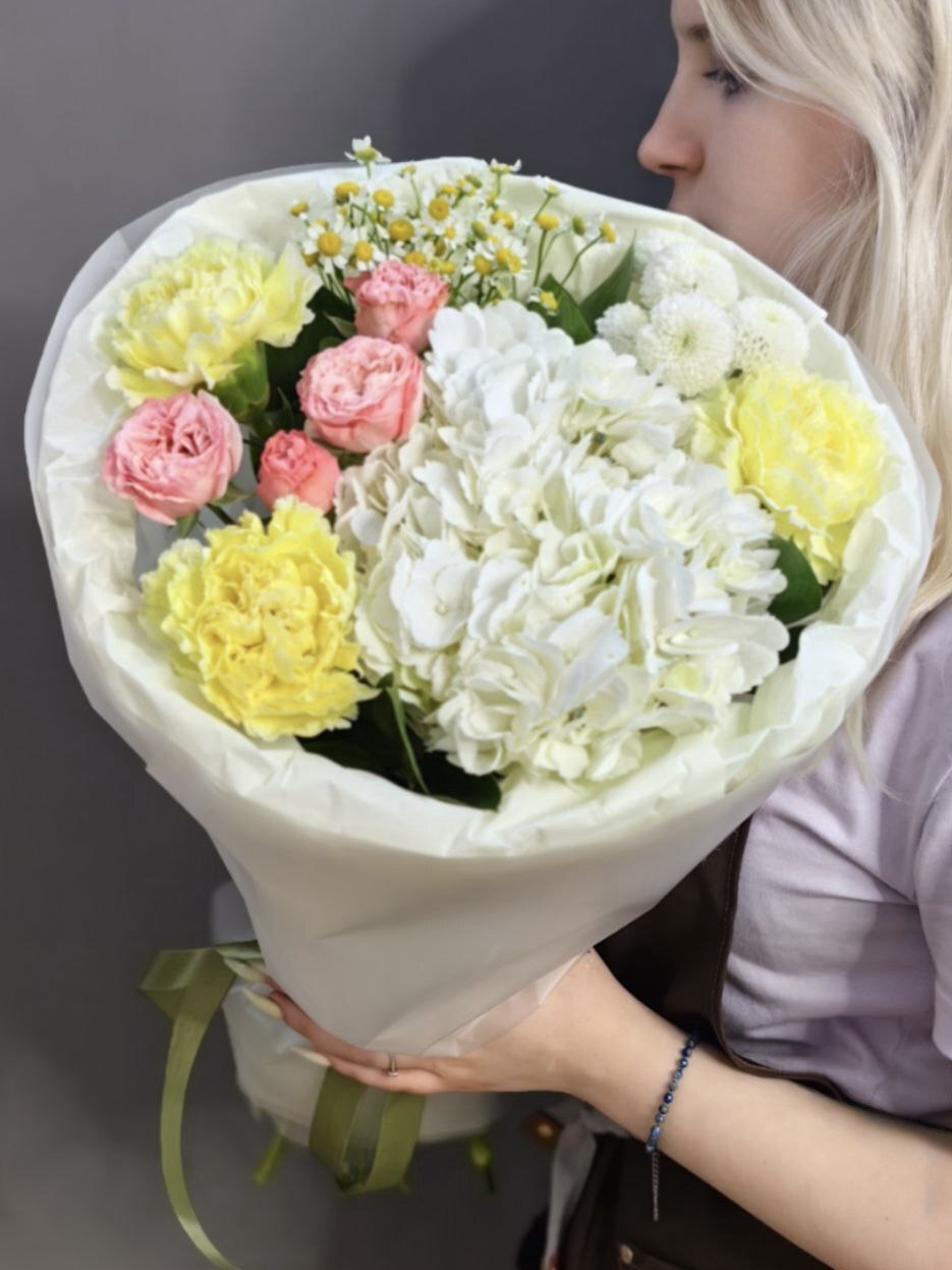 Авторский букет с белой гортензией