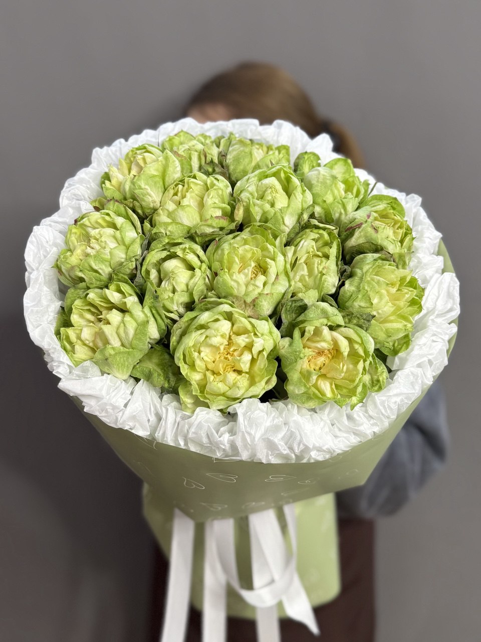 💚Монобукет собран из редчайших пионовидных роз сорта "Вегги". Их бутоны похожи на уютные кочанчики и вызывают желание смотреть на них бесконечно. Подарите близким ощущение тепла и заботы с помощью необычной и очень трогательной композиции.