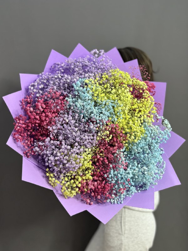 Гипсофила красится индивидуально под Ваш заказ. Если Вы оформили заказ с крашеной гипсофилой с доставкой в этот же день, то гипсофила может иметь запах краски, который в ближайшее время выветрится🤍