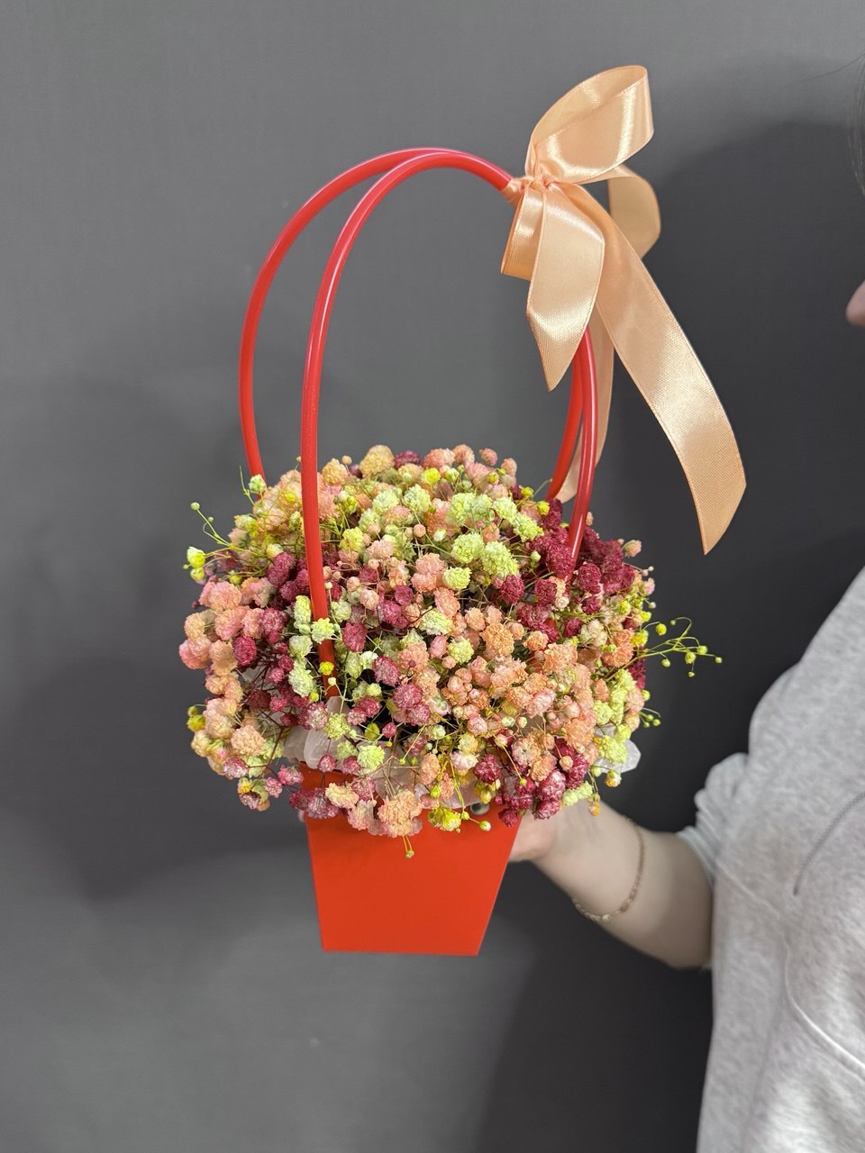 Гипсофила красится индивидуально под Ваш заказ. Если Вы оформили заказ с крашеной гипсофилой с доставкой в этот же день, то гипсофила может иметь запах краски, который в ближайшее время выветрится🤍