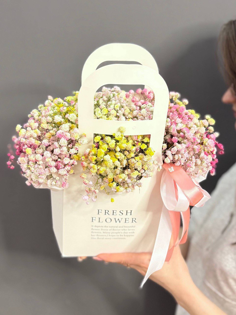 Гипсофила красится индивидуально под Ваш заказ. Если Вы оформили заказ с крашеной гипсофилой с доставкой в этот же день, то гипсофила может иметь запах краски, который в ближайшее время выветрится🤍