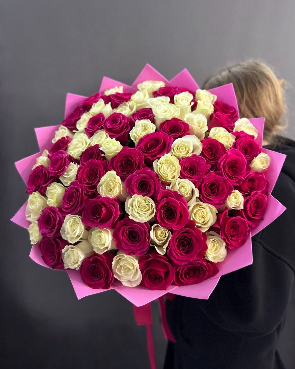 Букет из 75 белых и розовых роз (Эквадор 60 см)