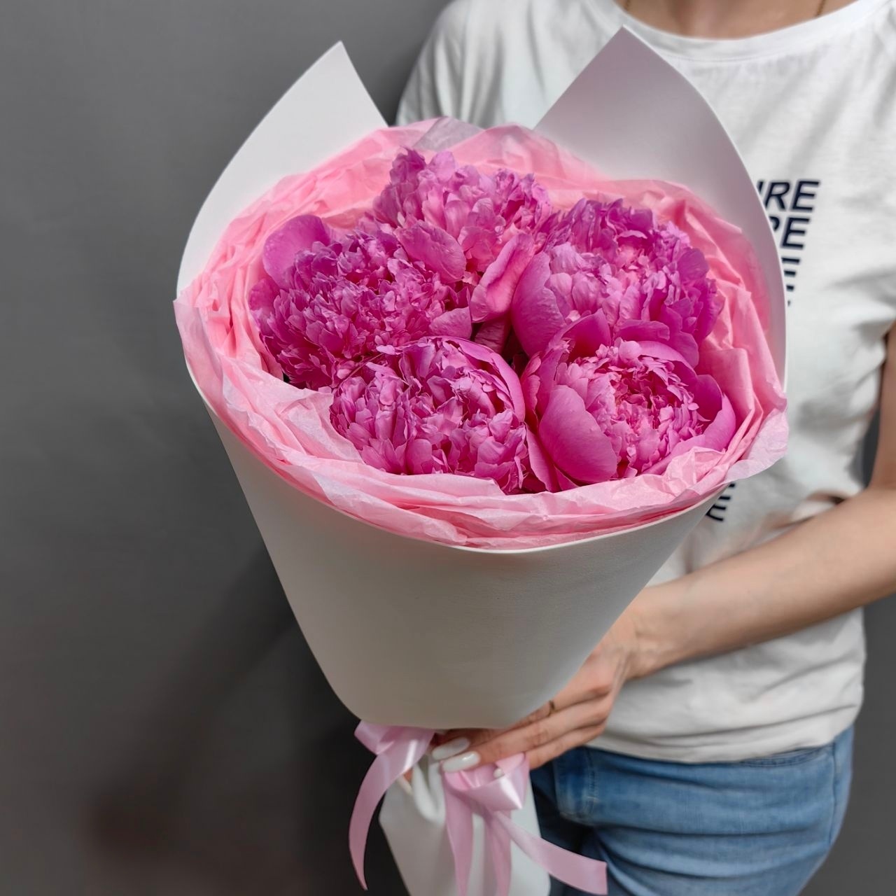 Букет из 5 малиновых пионов