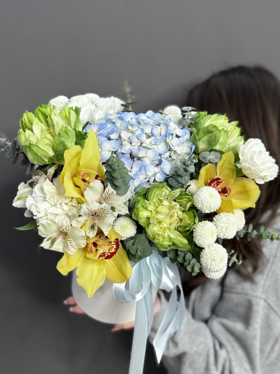 🌿 Каждая композиция индивидуальна, и повторить её «точь-в-точь» очень трудно. При сборке мы постараемся максимально сохранить цветовую гамму и стиль композиции.