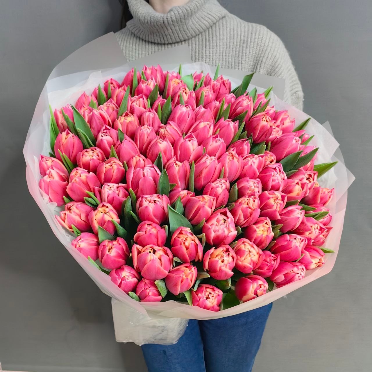 Букет из 101 пионовидного тюльпана