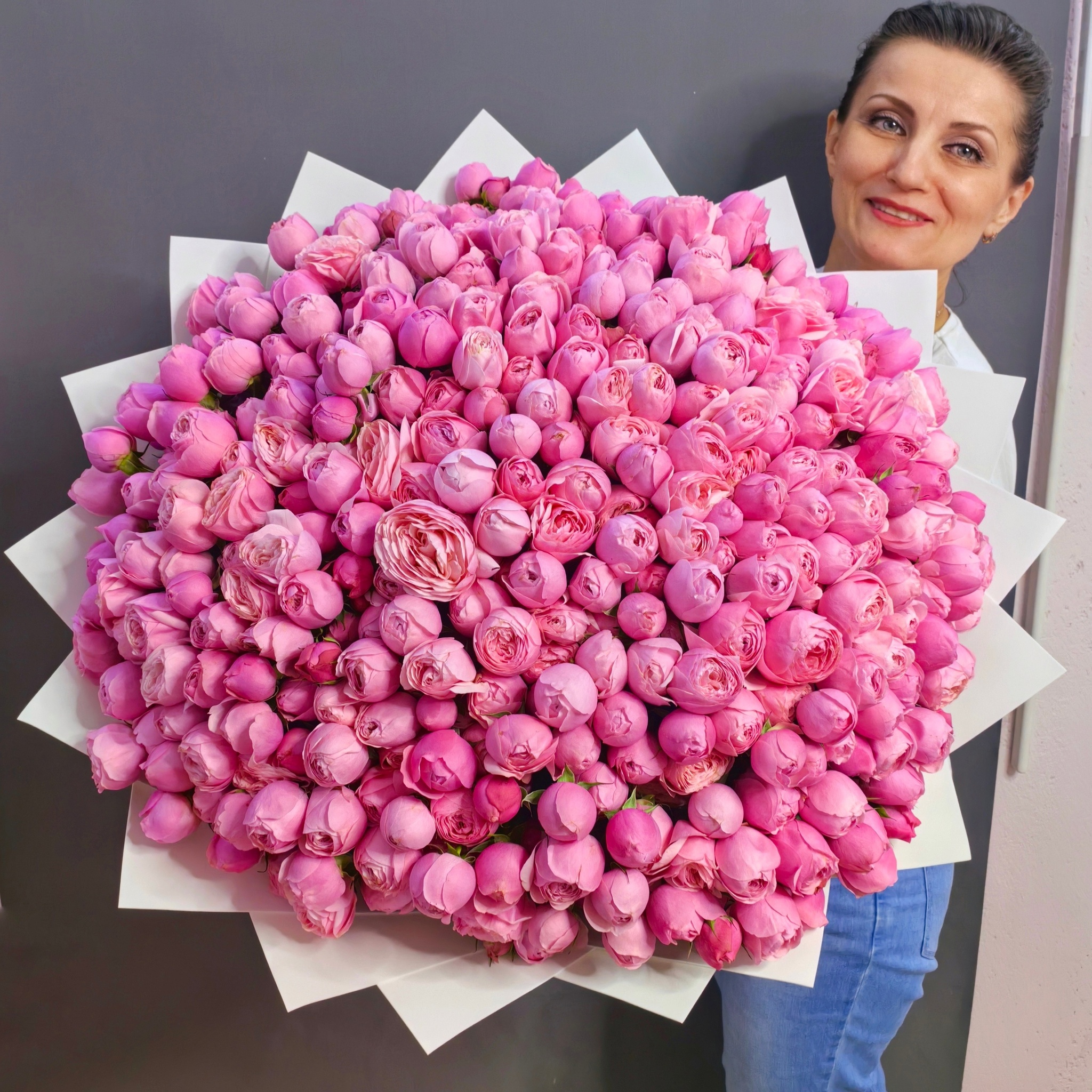 Букет из 101 кустовой пионовидной розы сорта "Силва Пинк"