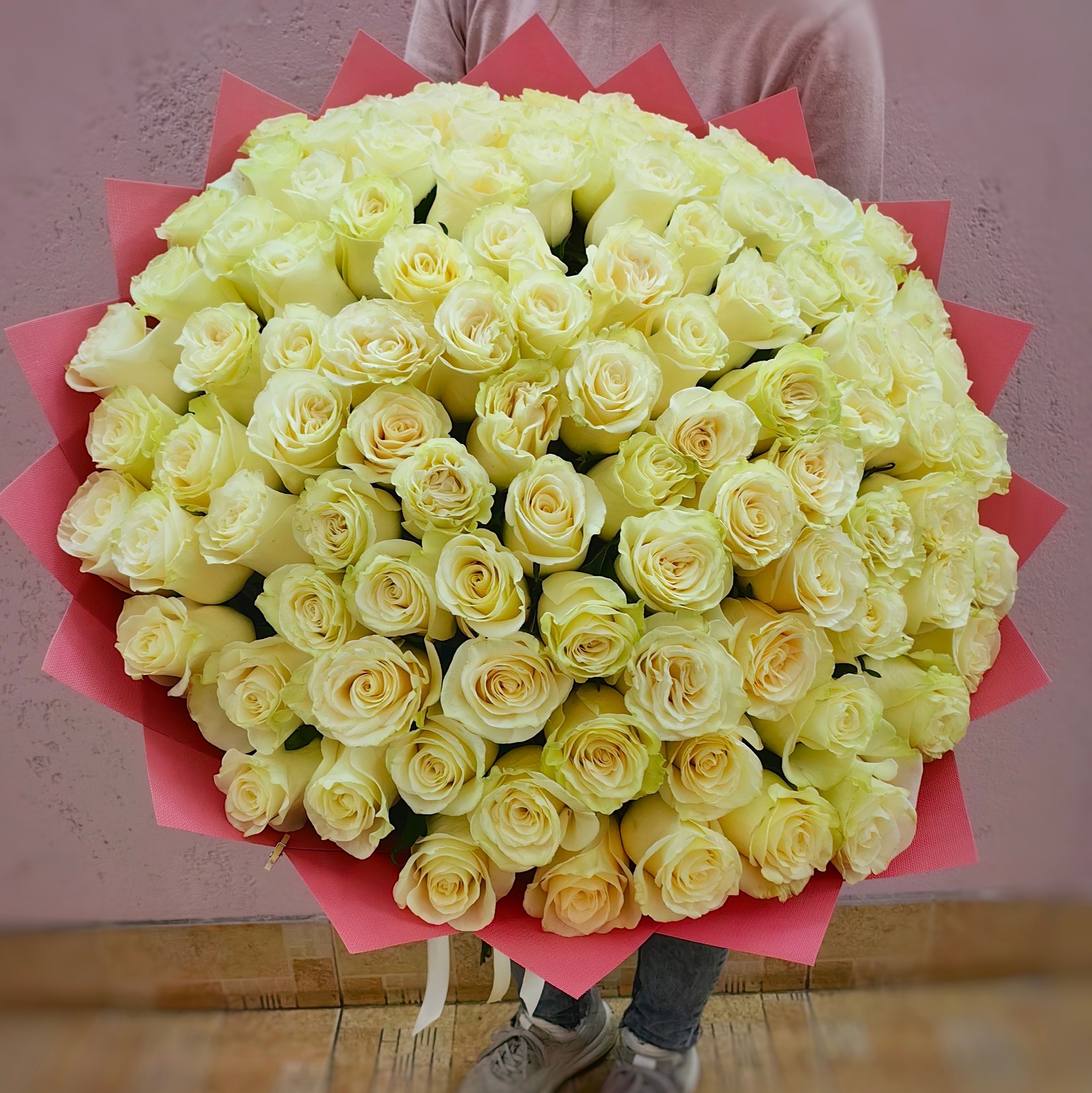 Букет из 101 белой розы сорта "Мондиаль" (Эквадор 60 см)