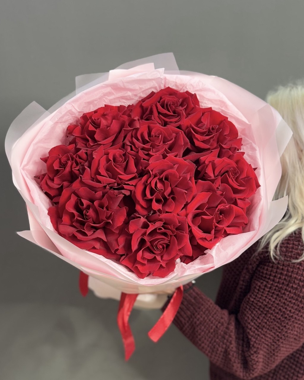 Букет из 11 французских роз сорта «Эксплорер» (Эквадор 60 см)