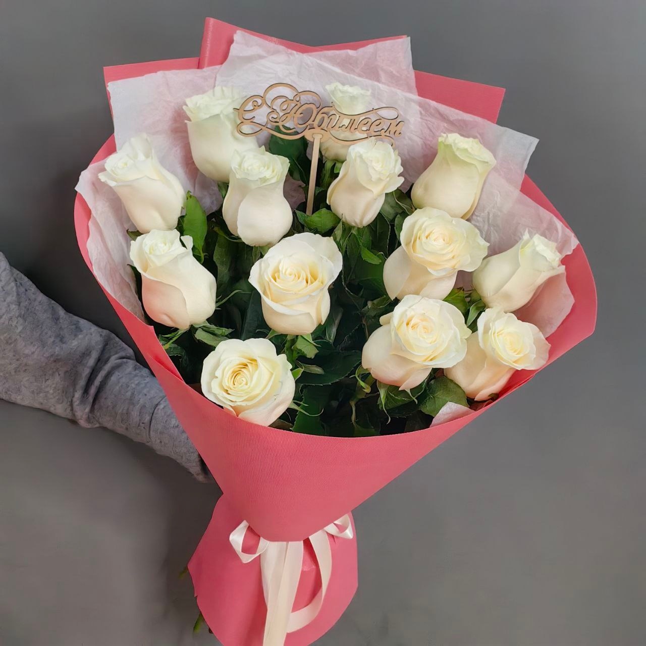 Букет из 13 белых роз сорта "Мондиаль" (Эквадор 60 см)