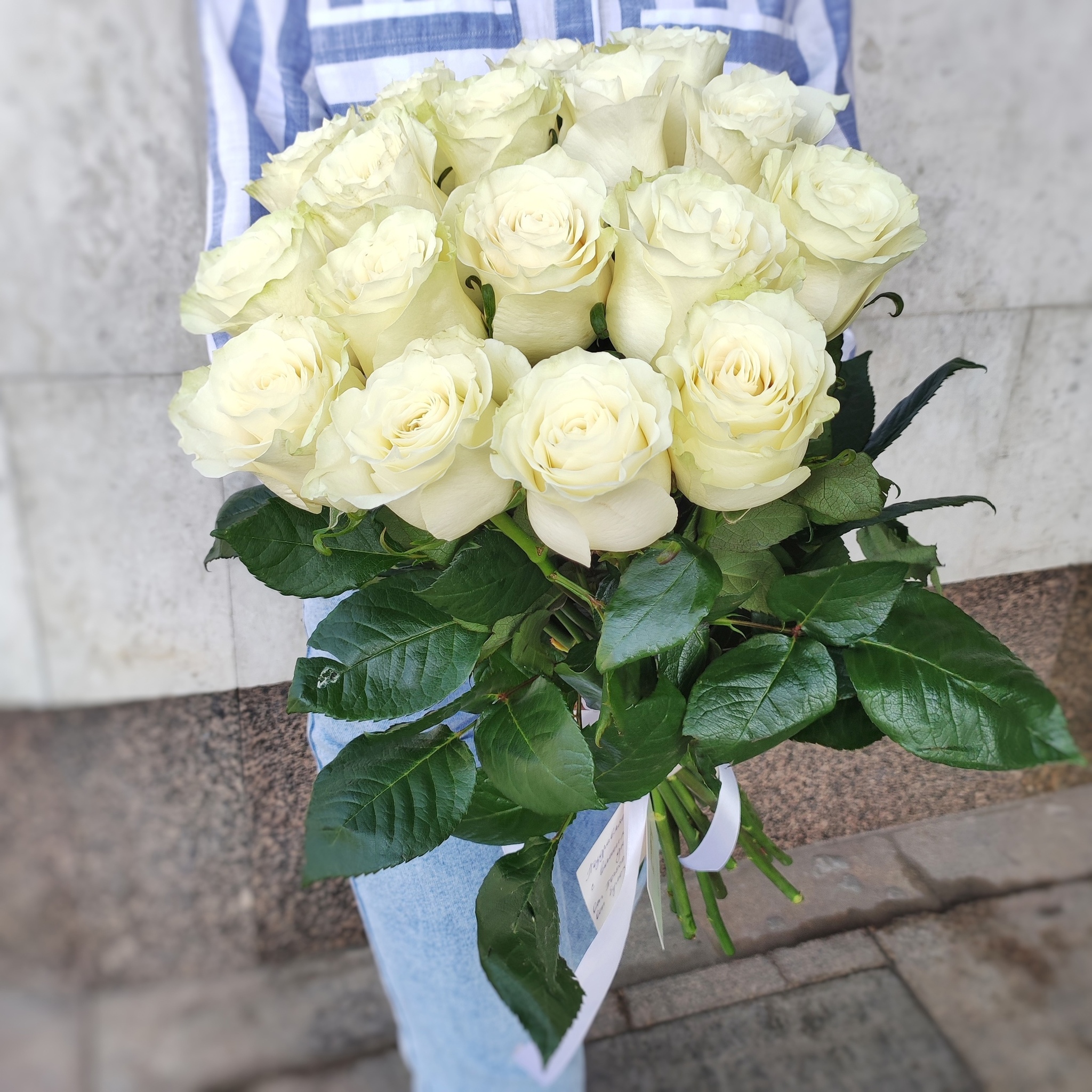 Букет из 17 белых роз сорта "Мондиаль" (Эквадор 60 см)