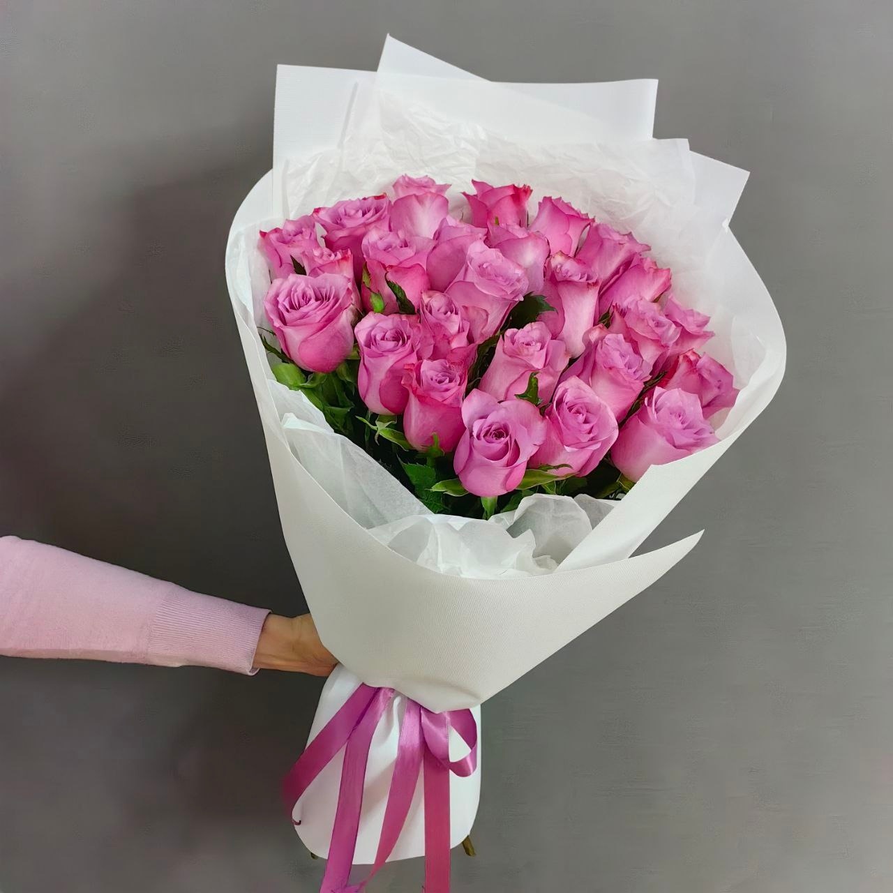 Букет из 25 сиреневых роз (Кения 60 см)