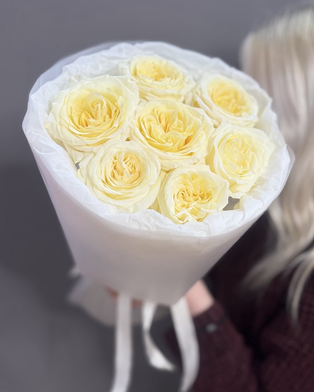 Букет из 7 ароматных пионовидных роз "Candlelight"