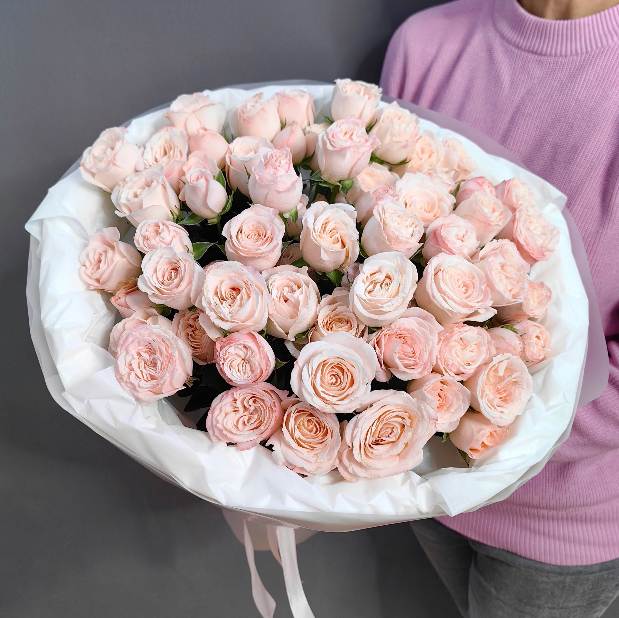 Букет из кустовых пионовидных роз сорта "Bombastic"