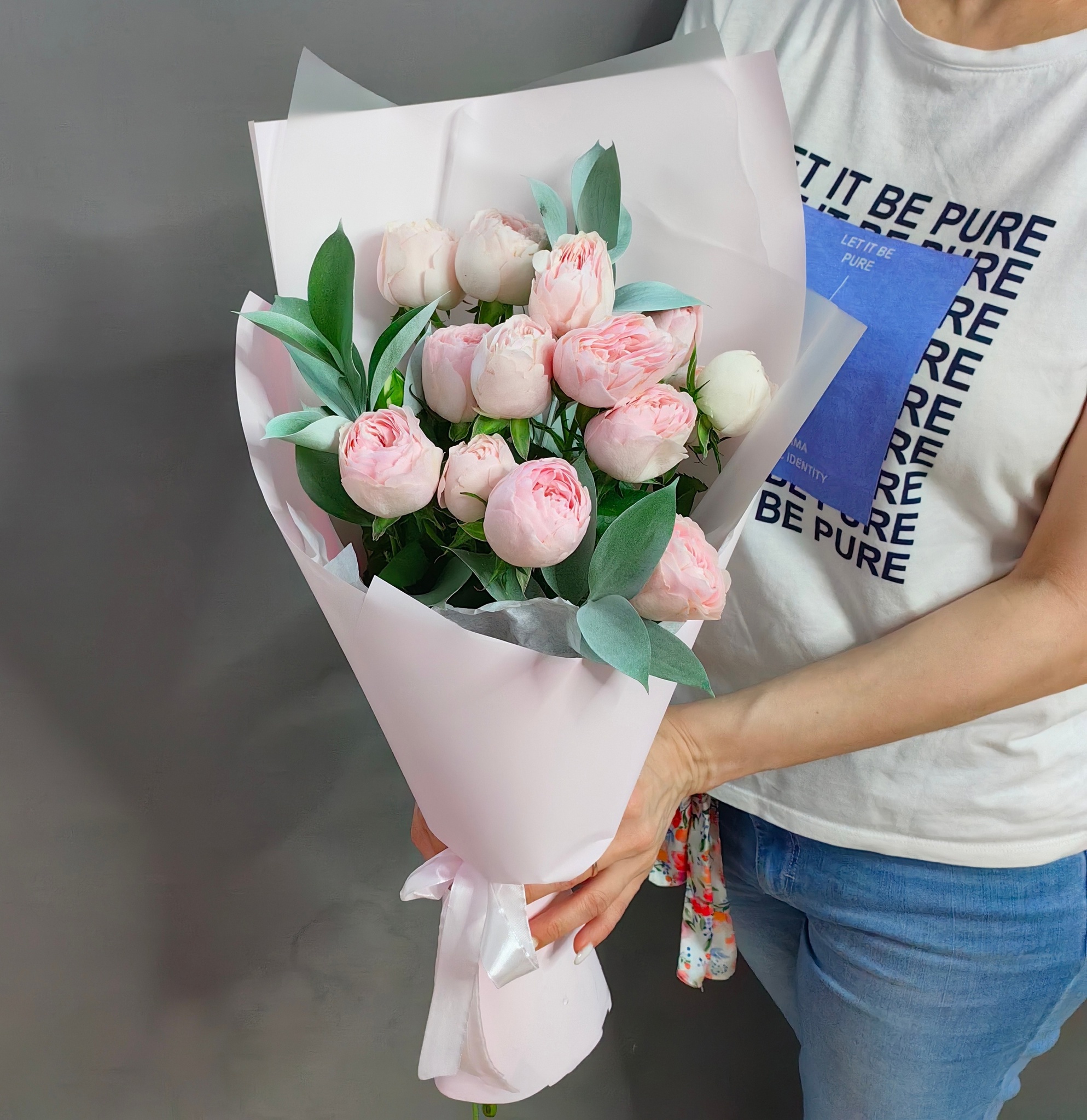 Букет из кустовых пионовидных роз сорта "Mansfield park"