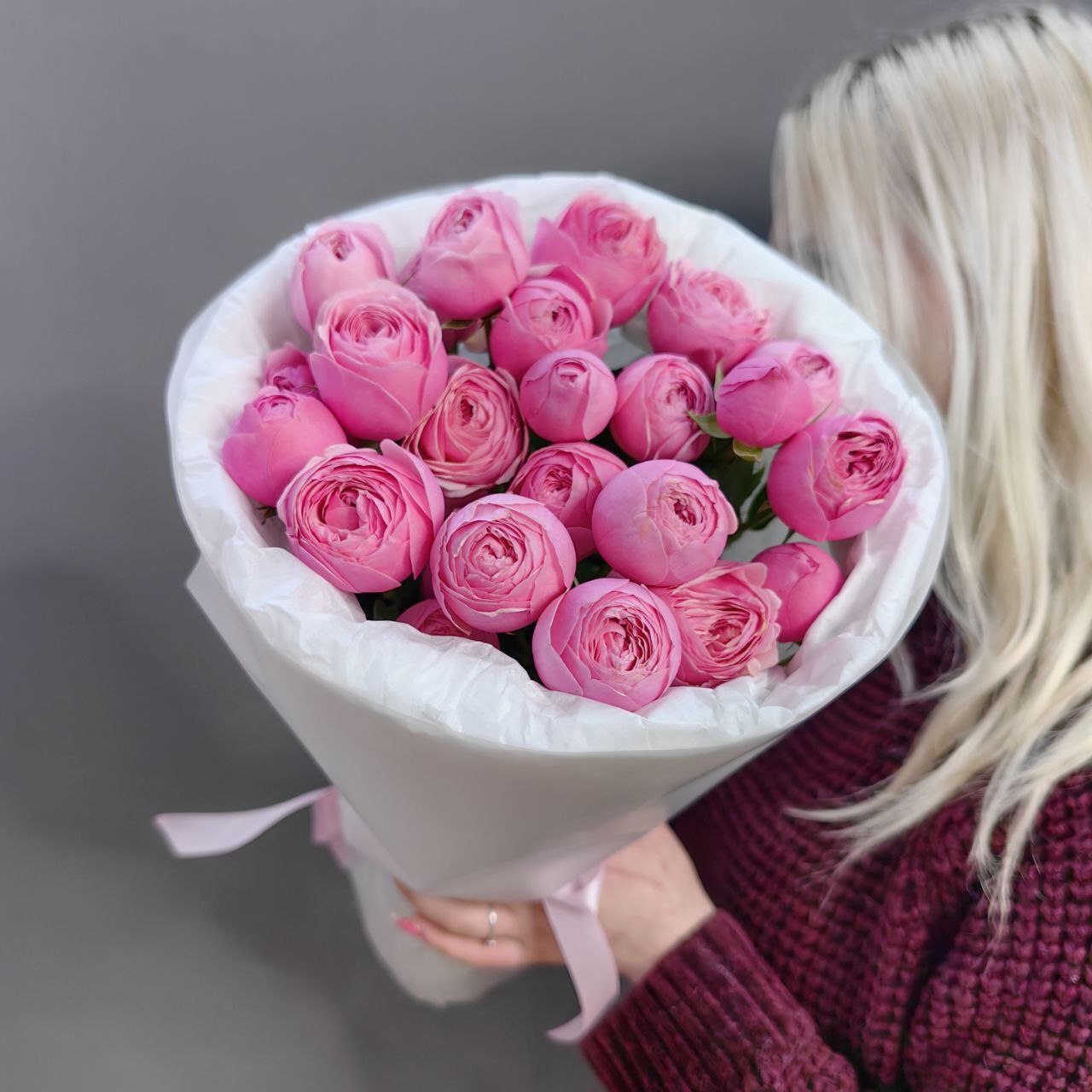 Букет из кустовых пионовидных роз "Силва Пинк"
