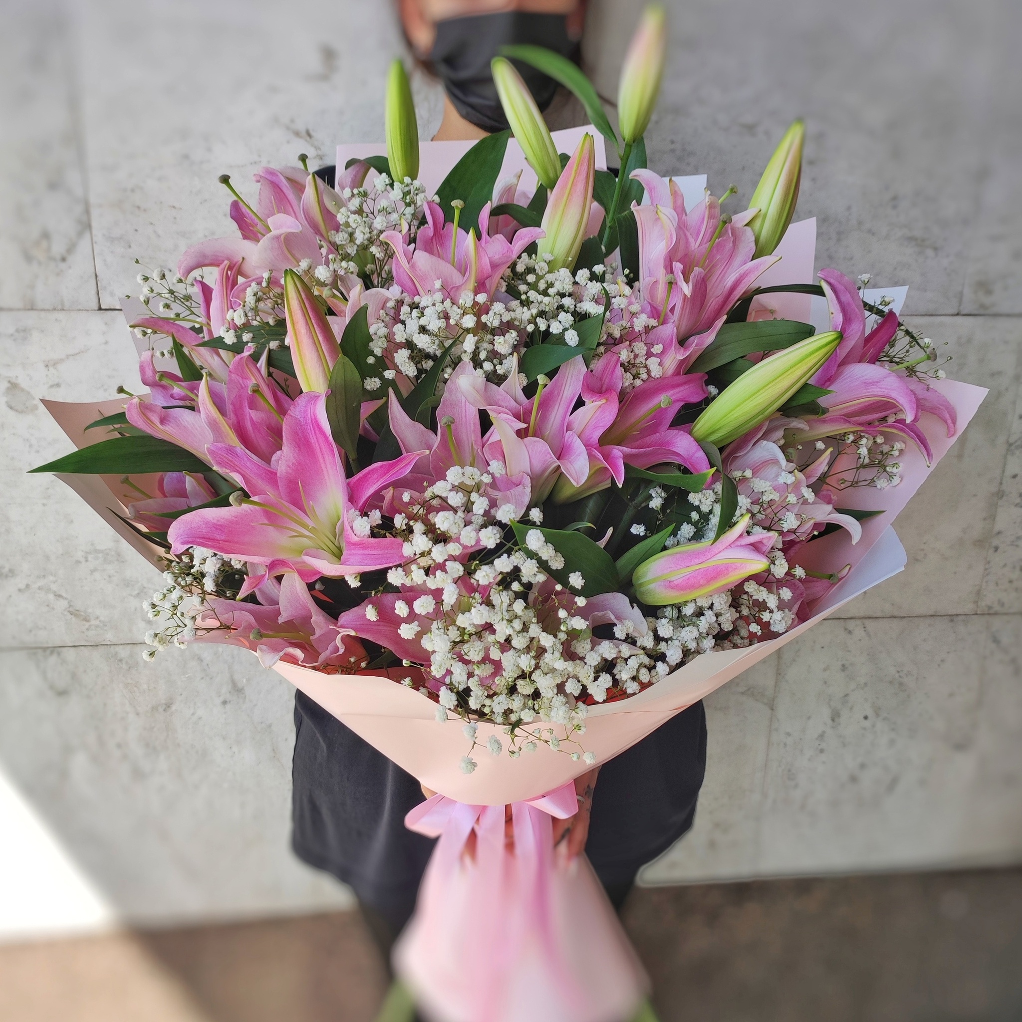 Букет с 7 розовыми лилиями