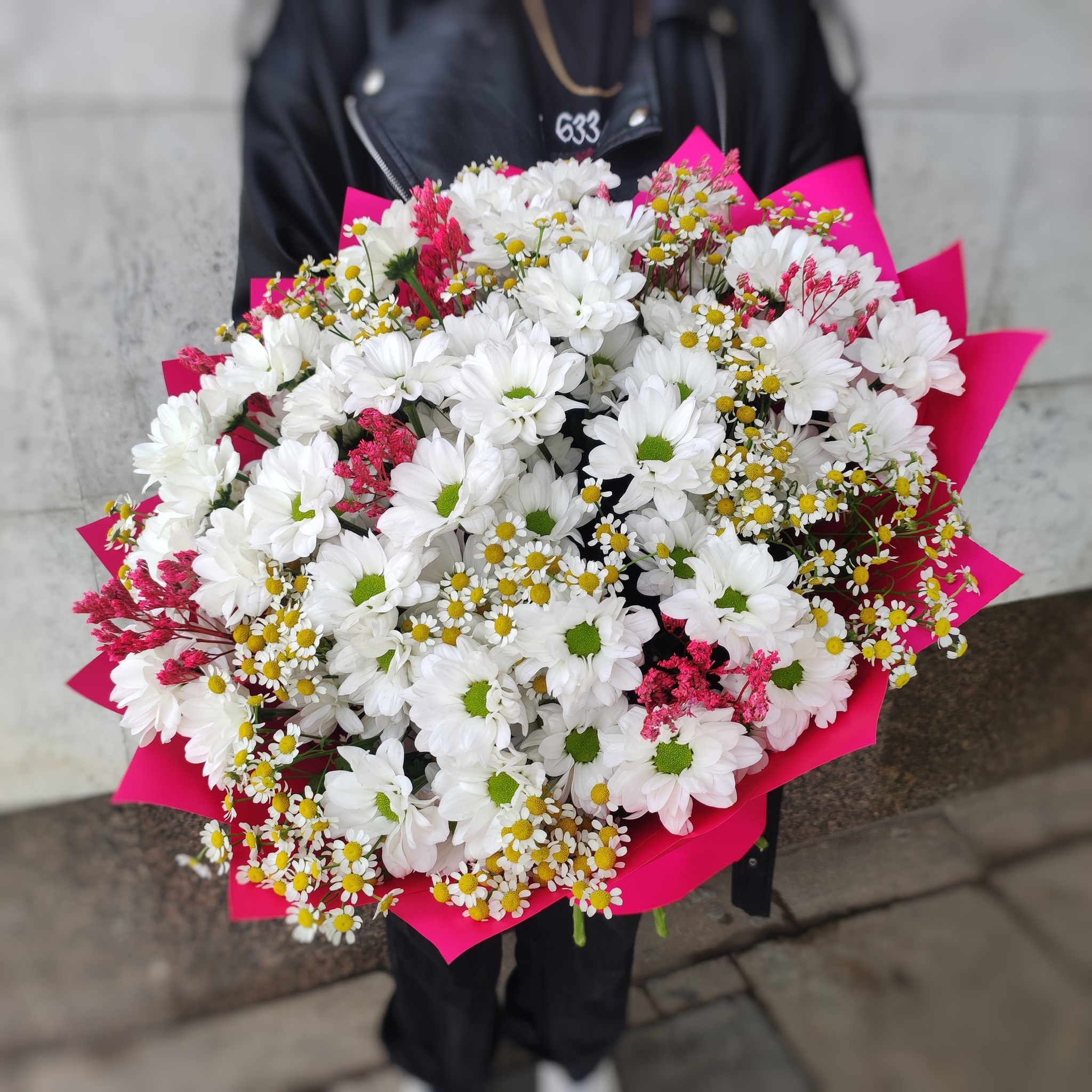 Букет с хризантемами "KENNEDY WHITE" и ромашек
