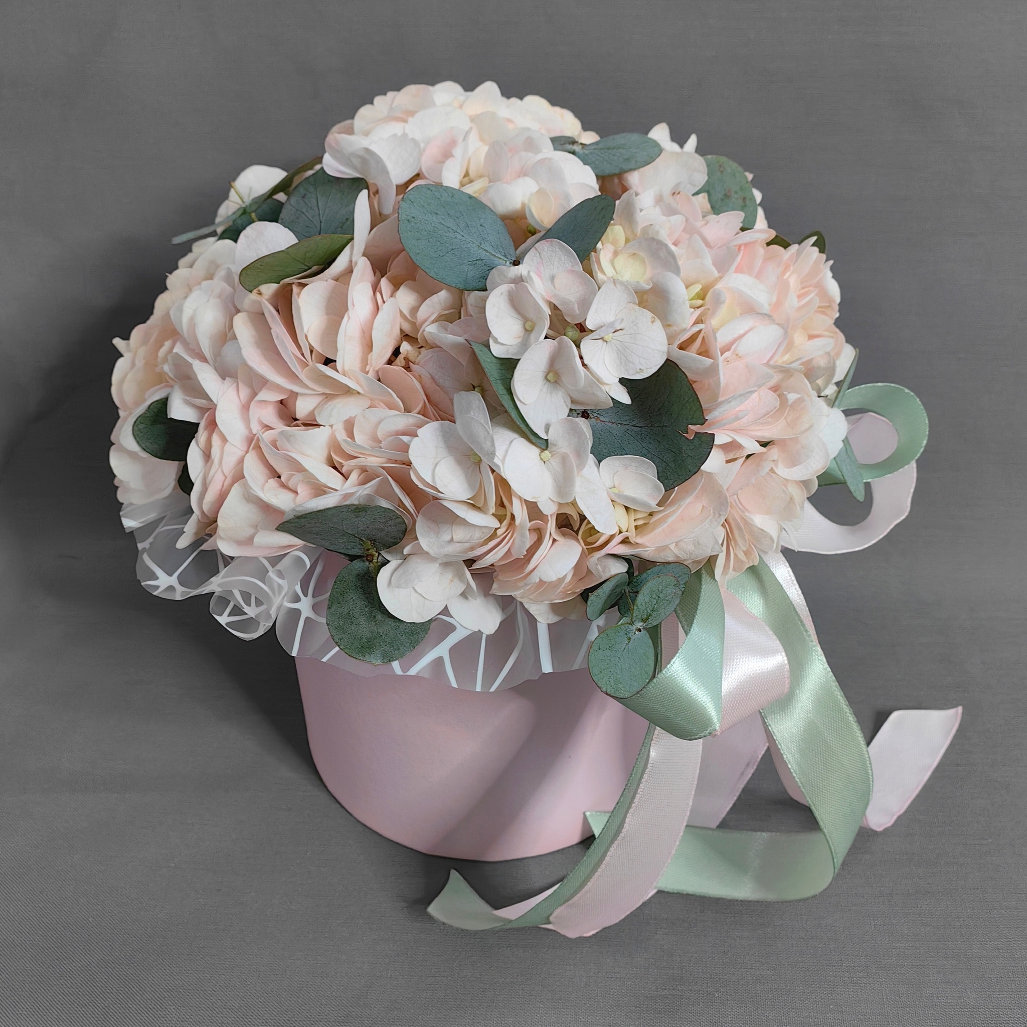 Композиция с розовой гортензией и эвкалиптом