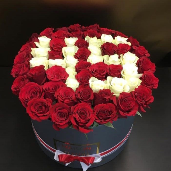 Роза одиночная белая и красная (Кения 60 см) - 45