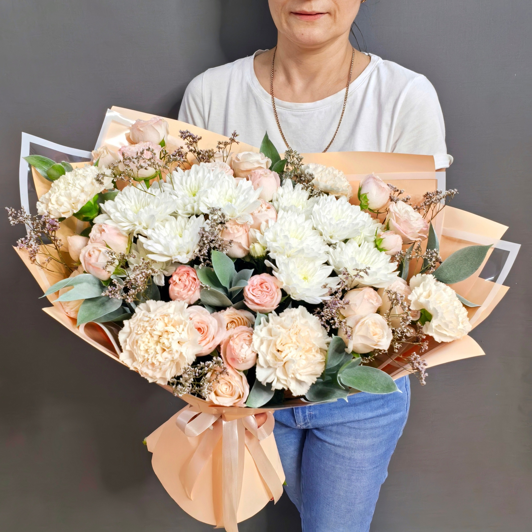 🌿 Каждый букет индивидуален, и повторить его «точь-в-точь» очень трудно. При сборке мы постараемся максимально сохранить цветовую гамму и стиль букета.