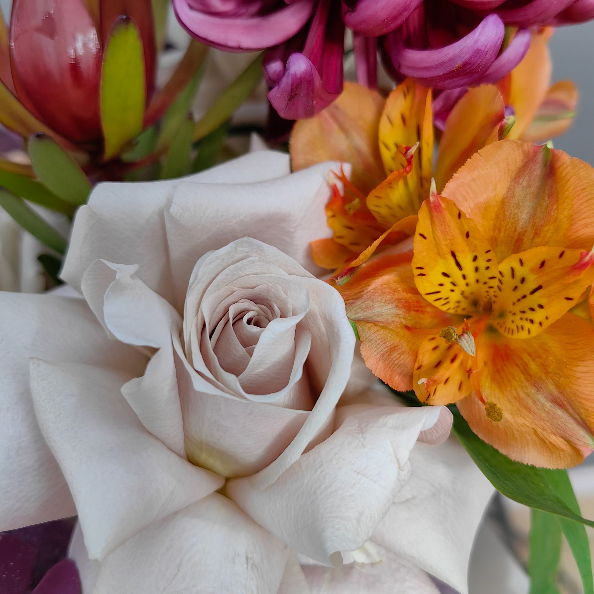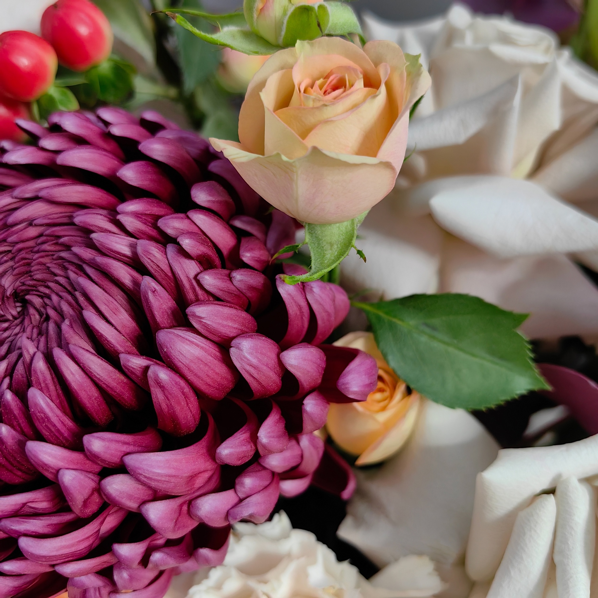 🌿 Каждая композиция индивидуальна, и повторить её «точь-в-точь» очень трудно. При сборке мы постараемся максимально сохранить цветовую гамму и стиль композиции.