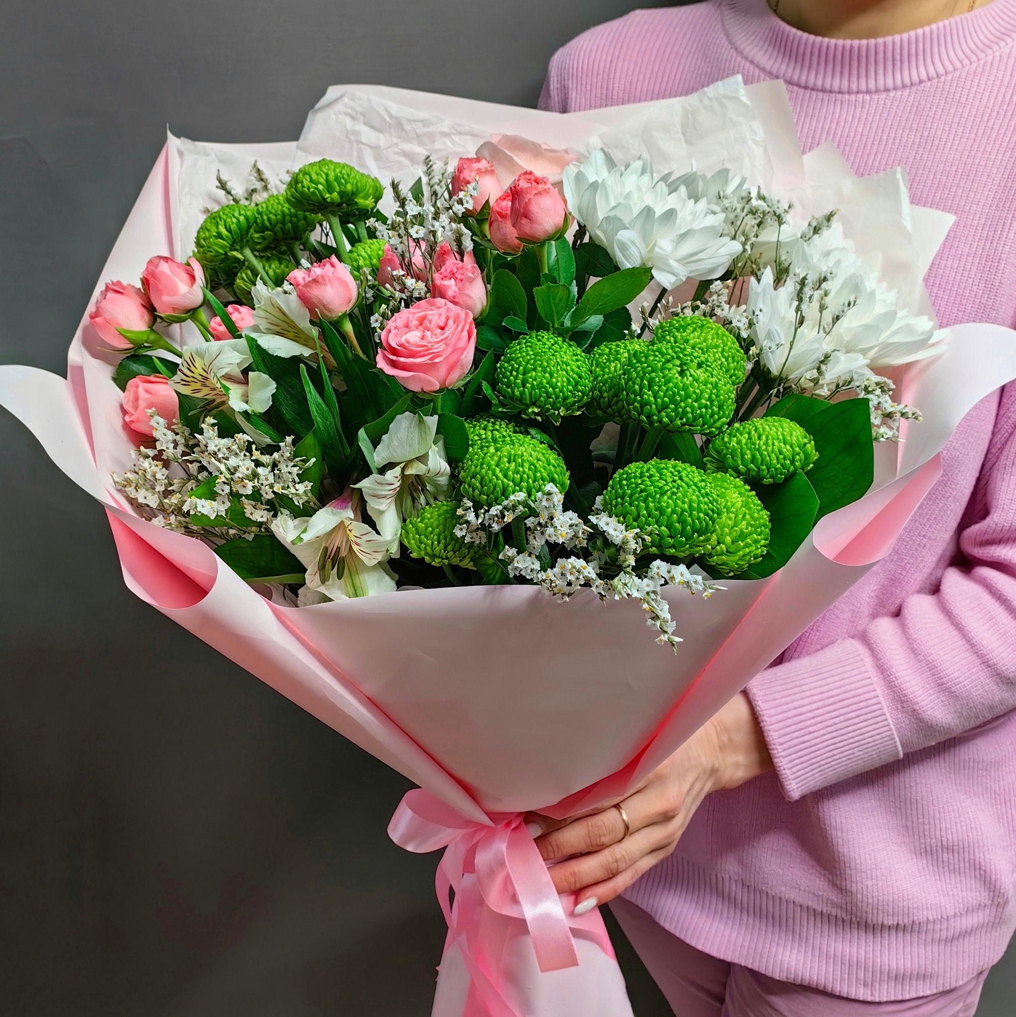 🌿 Каждый букет индивидуален, и повторить его «точь-в-точь» очень трудно. При сборке мы постараемся максимально сохранить цветовую гамму и стиль букета.