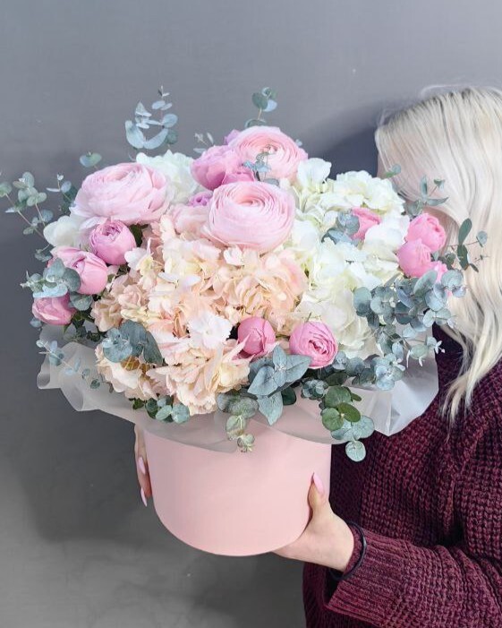 Композиция с гортензией и ранункулюсами