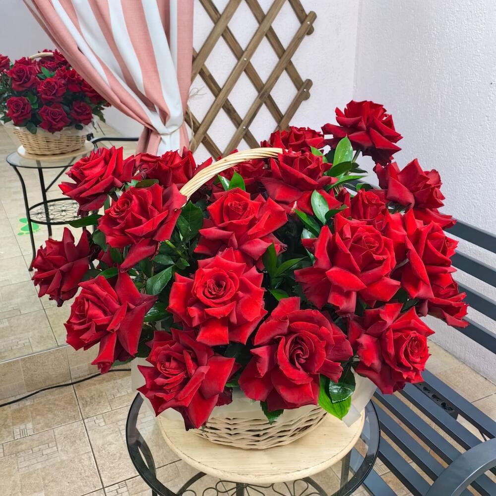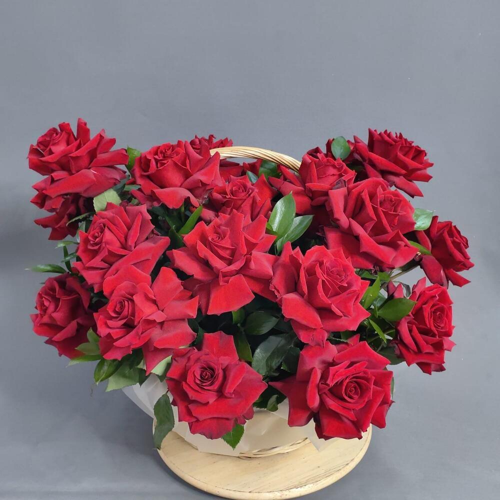 Корзина из 29 французских роз сорта "Эксплорер"